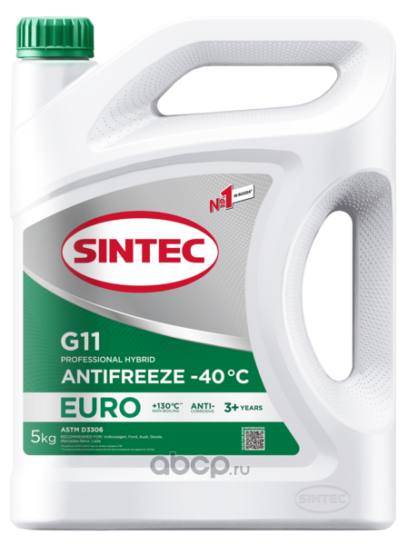 Sintec Антифриз Евро (Euro) G11 зеленый -40 – готовая к применению высококачественная низкозамерзающая охлаждающая жидкость. Изготовлена из высококачественного моноэтиленгликоля и пакета присадок на основе гибридной технологии, специально адаптированной для российских условий эксплуатации. Обеспечивает правильный тепловой режим эксплуатации двигателя, предотвращает появление коррозии и отложений в системе охлаждения.