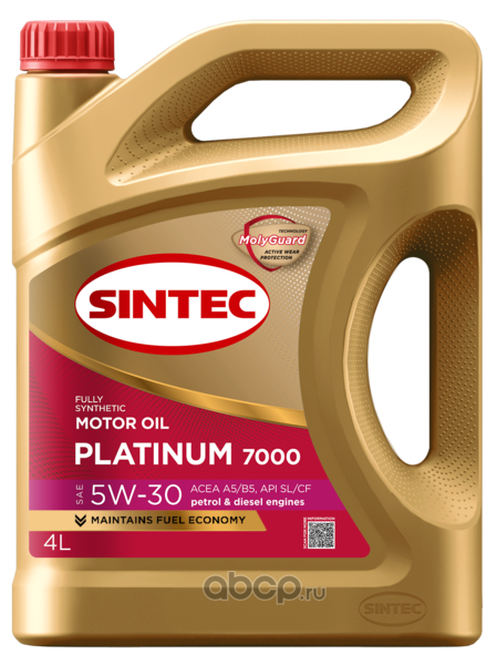 Cинтетическое энергосберегающее моторное масло Sintec Платинум (Platinum) 7000 5W-30 A5/B5 SL/CF предназначено для применения в современных высокоэффективных бензиновых и дизельных двигателях европейских, американских и азиатских производителей, где требуется уровень эксплуатационных свойств API SL/CF и ACEA A5/B5. Использует фирменную технологию .