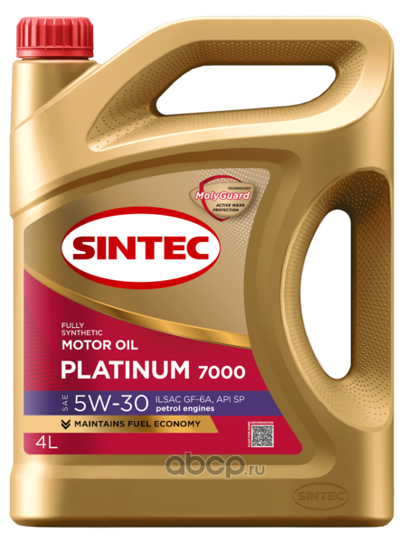 Cинтетическое моторное масло Sintec Платинум (Platinum) 7000 SAE 5W-30 ILSAC GF-6A API SP производится из высококачественных синтетических базовых масел и новейшего высокоэффективного пакета присадок c использованием фирменной технологии . Обеспечивает соответствие современным повышенным требованиям к экономии топлива, защите цепи ГРМ от износа и противодействию образования нагара на поршнях и в турбокомпрессоре.